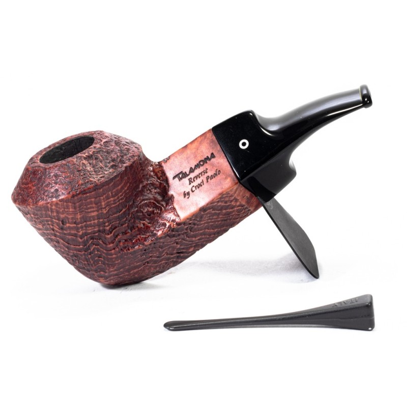 Talamona Calabash Reverse Sabbiata, Colore: Marrone, Bocchino a sella, senza filtro, sacchetto e scatola originale, Made in Italy.
