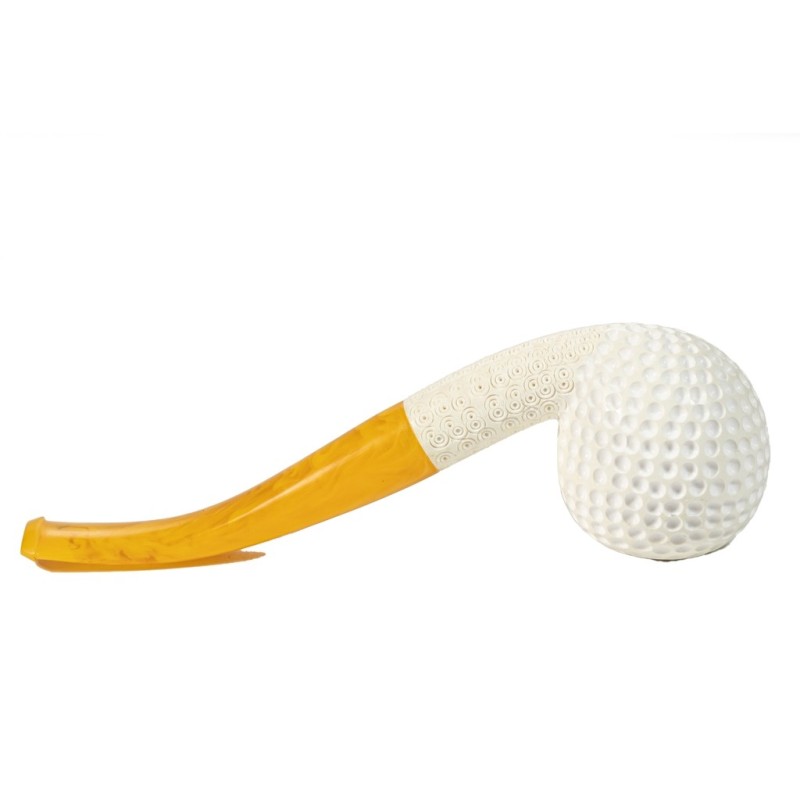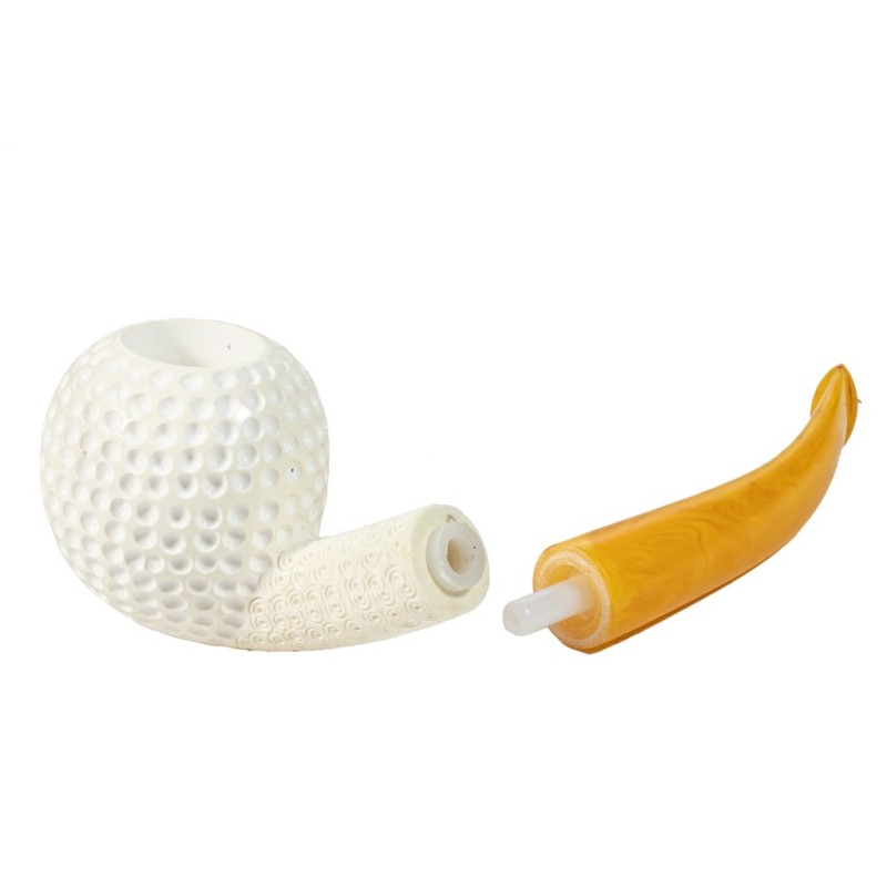 Pipa in Schiuma, Lavorata a mano, Modello B 203 Pallina da Golf, senza filtro, custodia rigida in pelle rossa a misura.