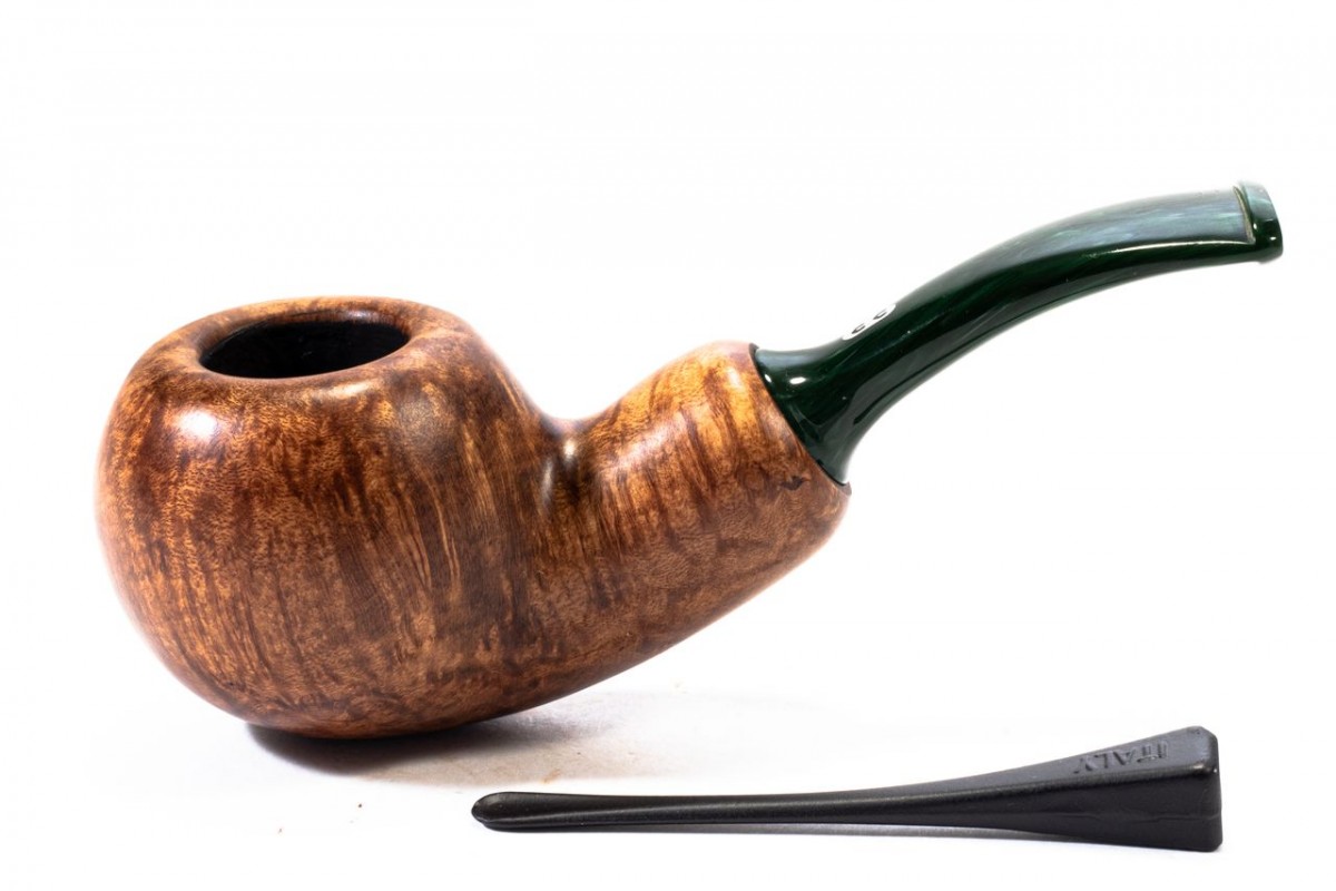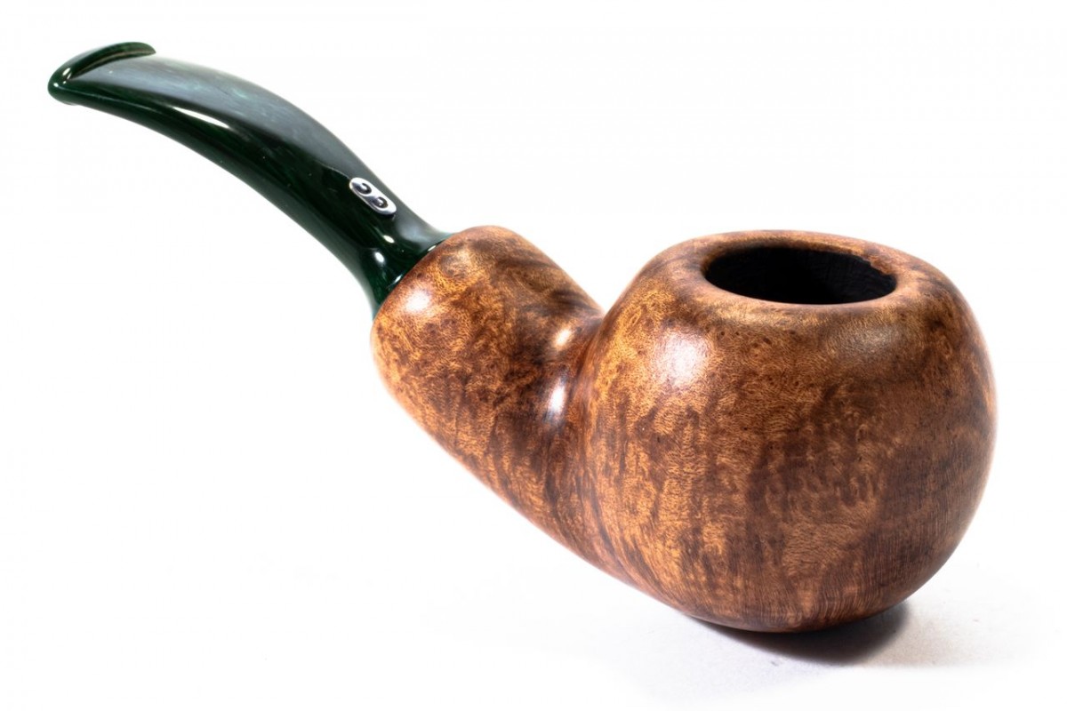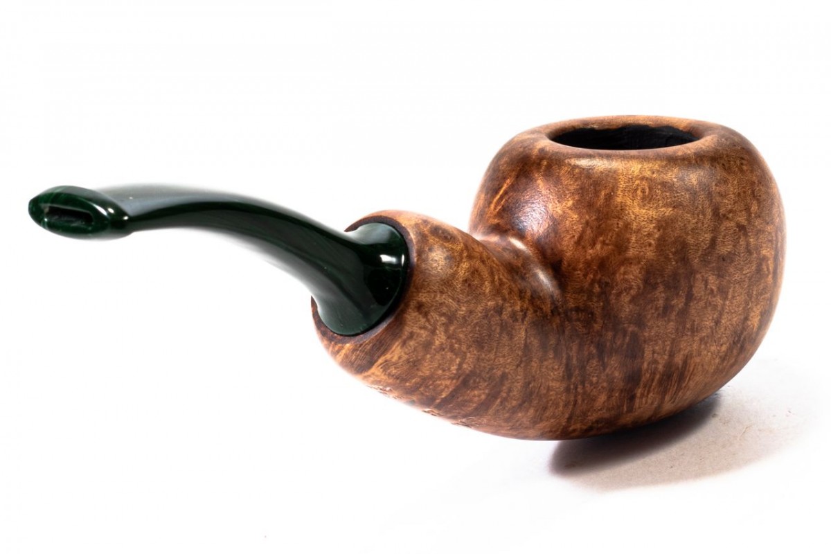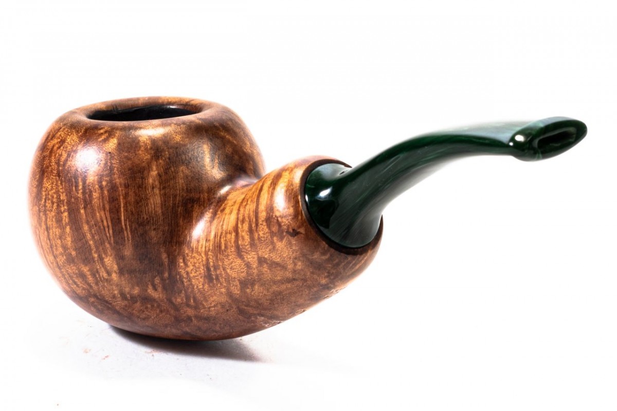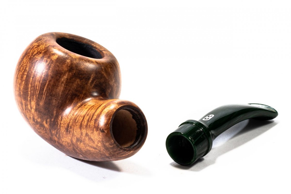 Chacom Reverse Calabash Liscia, Colore: Marrone Scuro, Bocchino Verde, senza filtro, scatola e sacchetto originale, Made in France.