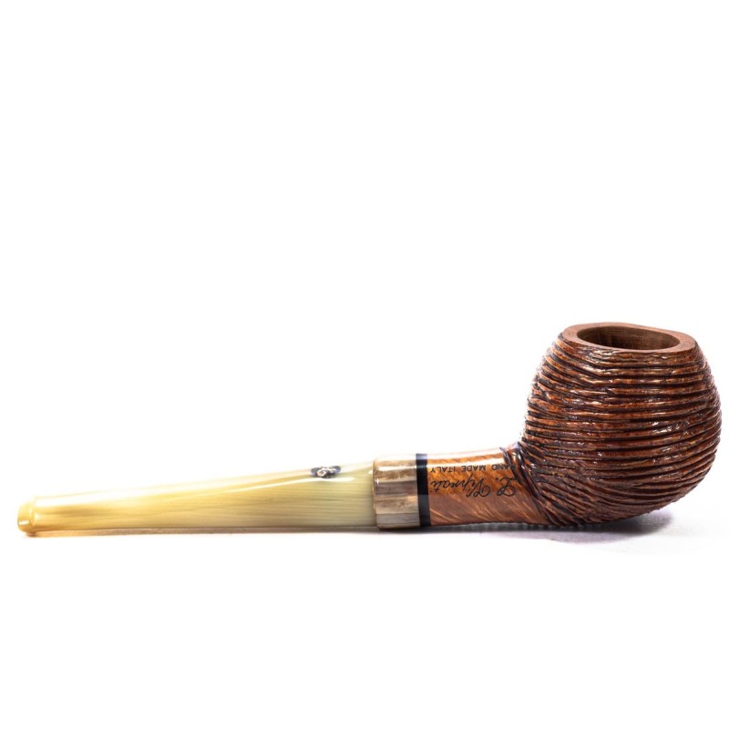 Viprati Rusticata, Colore: Marrone, Rusticatura Circolare, Rim Lucido, Vera in Metacrilato, bocchino in Corno, senza filtro, sacchetto e scatola originale.