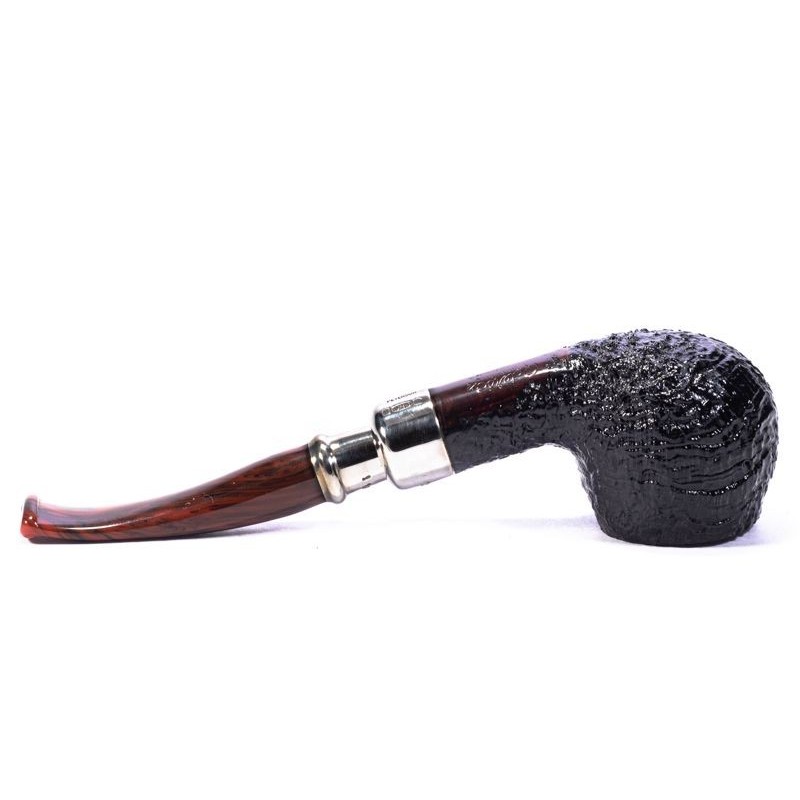 Peterson Newgrange Spigot Sabbiata, Modello 406, Colore: Nero, Rim Liscio, Punzonatura Peterson of Dublin sulla doppia Vera in Argento, innesto a flock, senza filtro, sacchetto e scatola originale.