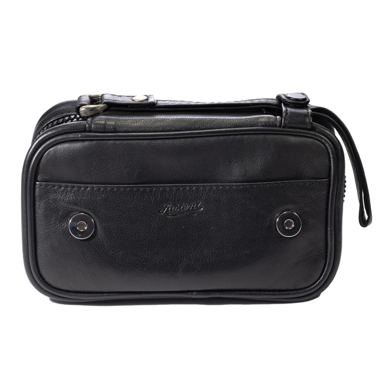 Borsa portapipa per 2 pipe in Nappa, 1 Cerniera, 2 tasche esterne, 1 portatabacco estraibile, porta pigino, Colore: Nero.