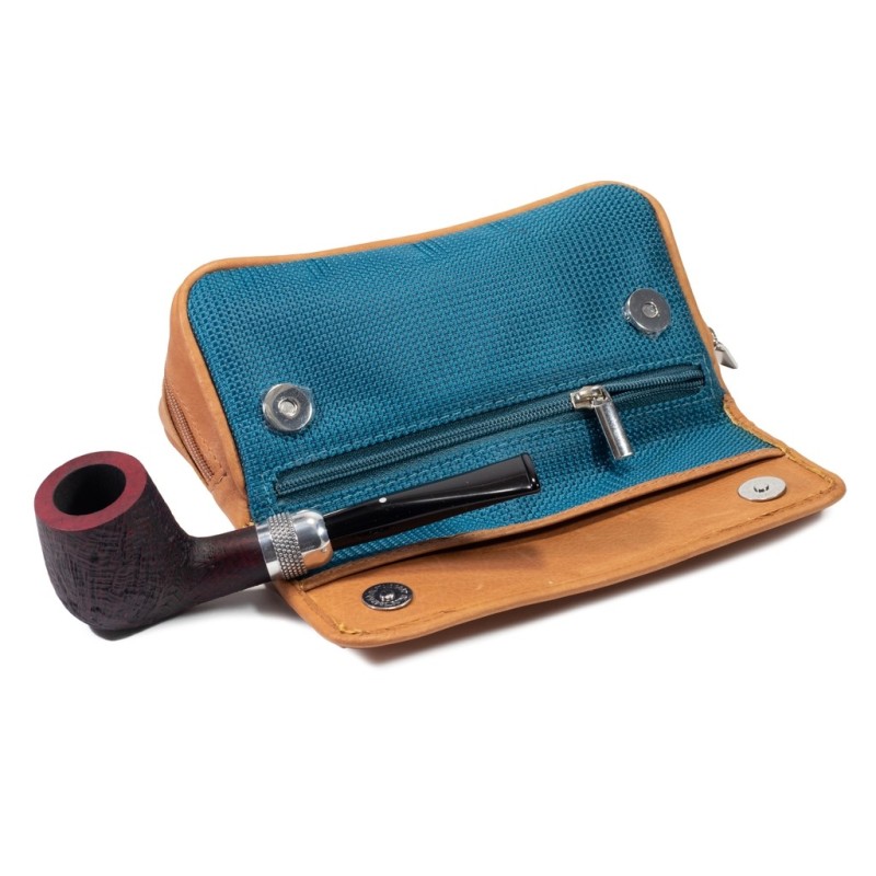 Borsa Portapipa in Pelle per 1 Pipa con scomparto per portatabacco e accessori, chiusura con bottone a calamita, Colore: Blu in Nylon, Made in Germany.