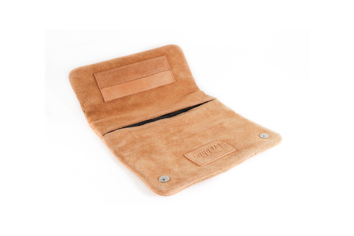 Brebbia portatabacco in camoscio a bottoni con porta cartine e taschino portatabacco, 1 taschino con zip esterno, colore: Beige.